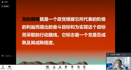 至此,华中师范大学第67期学生入党积极分子培训班(第十分党校)开班典礼圆满结束。开班仪式结束后,马克思主义学院副教授徐秉国为学员们讲授第一次党课。通过徐老师的讲解,学员们对中国共产党的纲领有了更深刻的认识,也期盼着能够早日加入中国共产党。