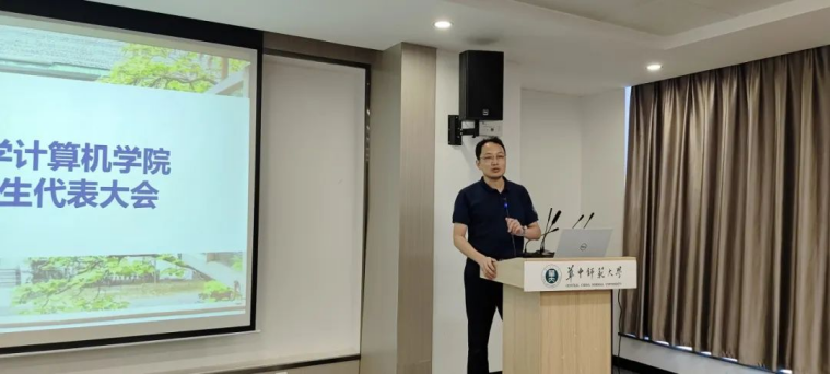 计算机学院党委副书记庄甲鹏为大会致辞。他充分肯定了第26届研究生会的付出与成绩,同时表达了对下一届研究生会再创佳绩的期待。庄书记对研究生会提出了两点希望:一是明确组织定位,二是明确自身定位。他谈到研究生会是一个充满机会与挑战的地方,希望研究生会的同学们坚持走群众路线,做青年友,不做青年官,增强自身政治领悟力和执行力,共同为学院的发展和研究生群体的进步贡献力量。