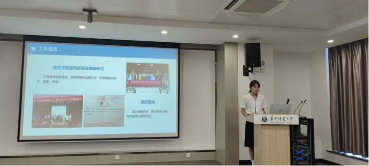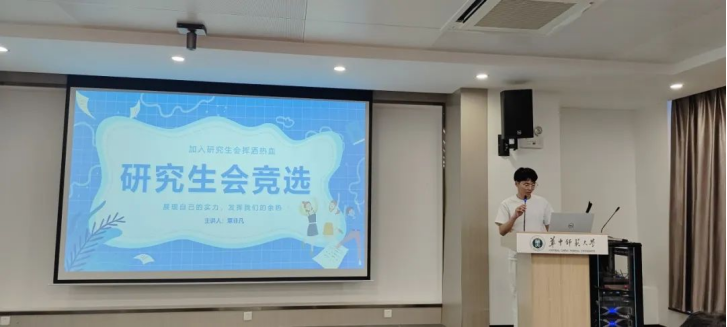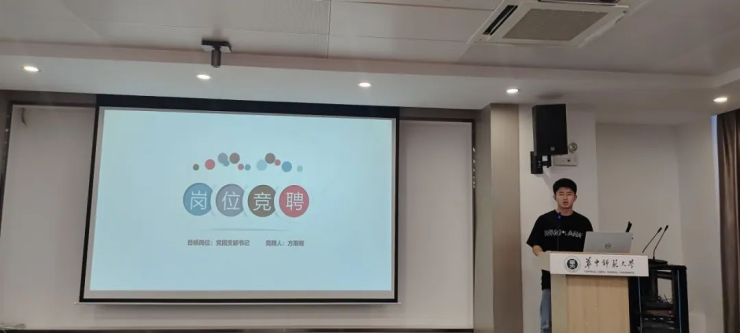 随后,第26届研究生会主席团成员谭智泉宣读《华中师范大学计算机学院第27次研究生代表大会选举办法》,进入研究生会候选人竞选演讲环节。本次竞选采取个人限时演讲、评委提问的方式进行。23位候选人依次上台演讲,就自身的基本情况、对工作岗位的认识及未来规划等方面进行了演讲。