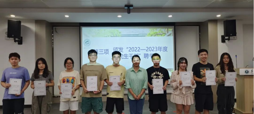 现场为第26届研究生会干部颁发了“2022—2023年度研究生干部”聘书和“优秀研究生会干部”荣誉证书。