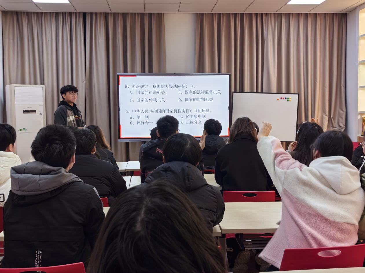 宪法知识竞答环节,团学成员们积极响应,踊跃参与。大家纷纷举手,以扎实的知识储备和积极的精神状态参与知识竞答。充分展现出了团学干部们对宪法学习的高度热情和深入探究的精神风貌,彰显出新时代学子对宪法的尊崇。