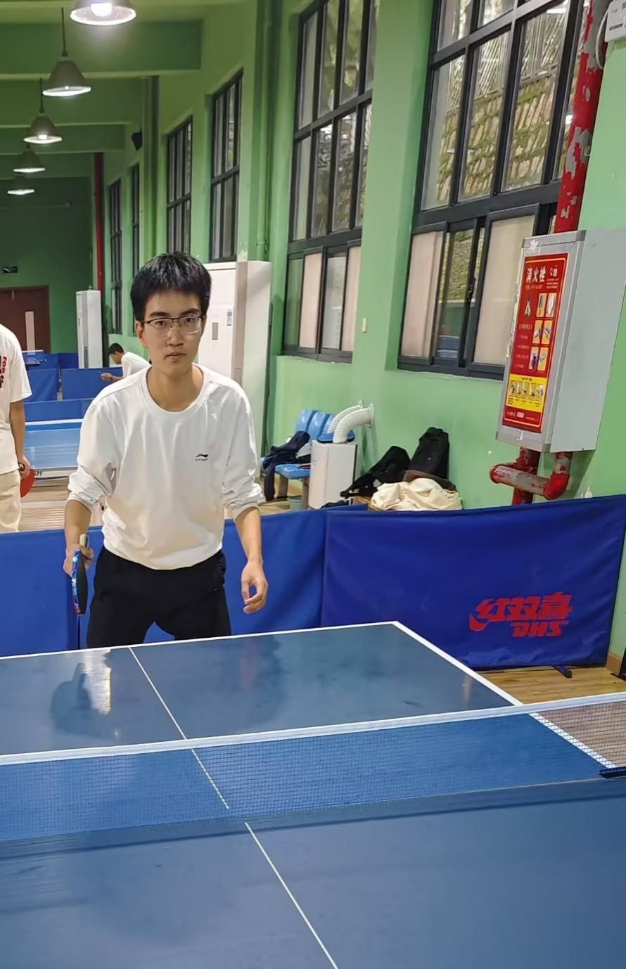 对肖振豪而言,运动不仅是习惯和兴趣,更是学习之外放松自我的最佳途径。作为一名喜爱乒乓球的学生,他早早加入了计算机学院乒乓球队,与一群志同道合的队友一起切磋球技。初入球队时,他的球技并不出众,但在一次次的训练中,他逐渐提高了自己的技术,也收获了友谊和乐趣。
