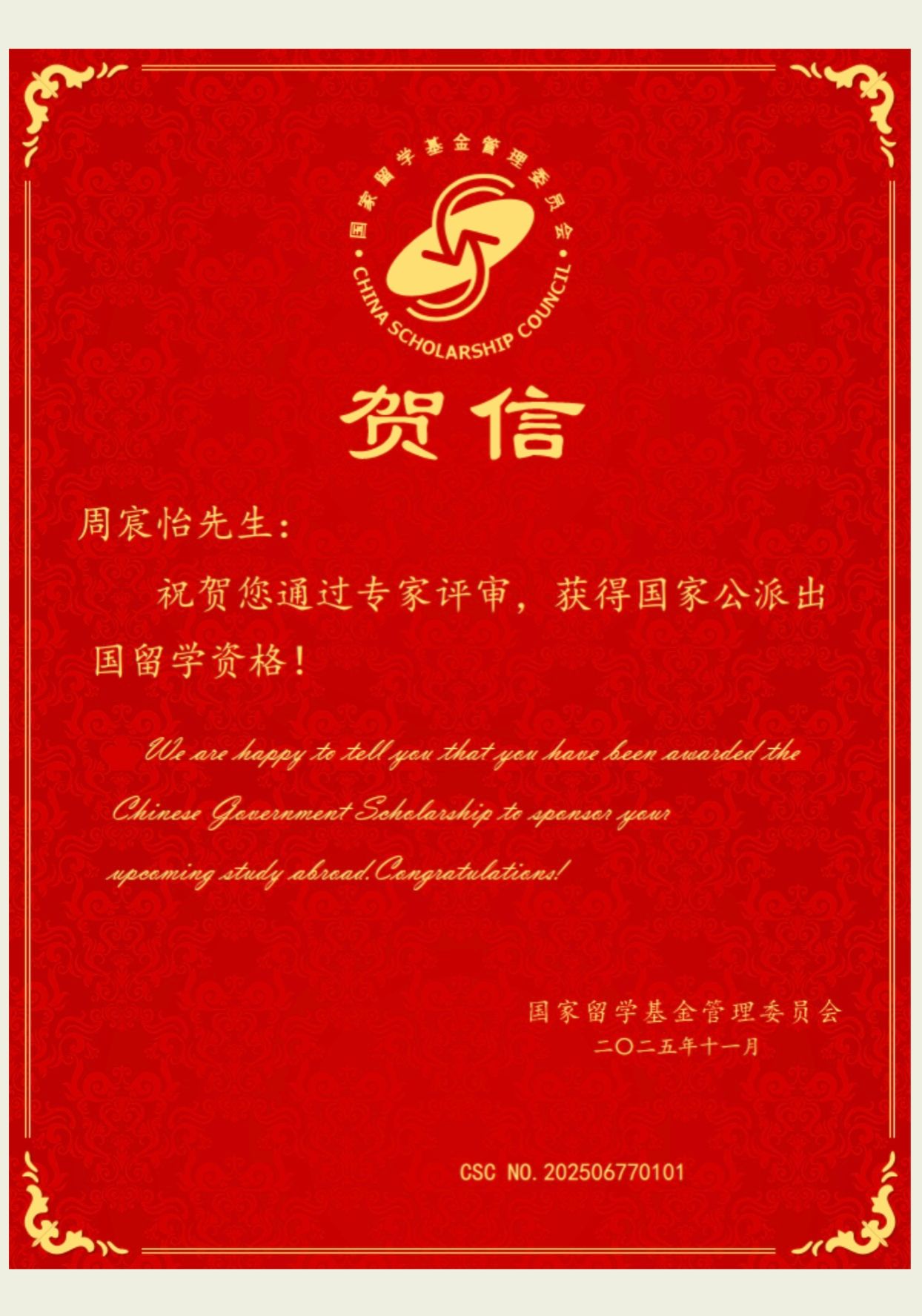 日前,国家留学基金管理委员会(CSC)公布国际组织实习项目评审结果,计算机学院软件工程专业2022级本科生周宸怡获批资助,将赴位于美国纽约的联合国人道主义事务协调厅(OCHA)参加实习,实习期六个月。