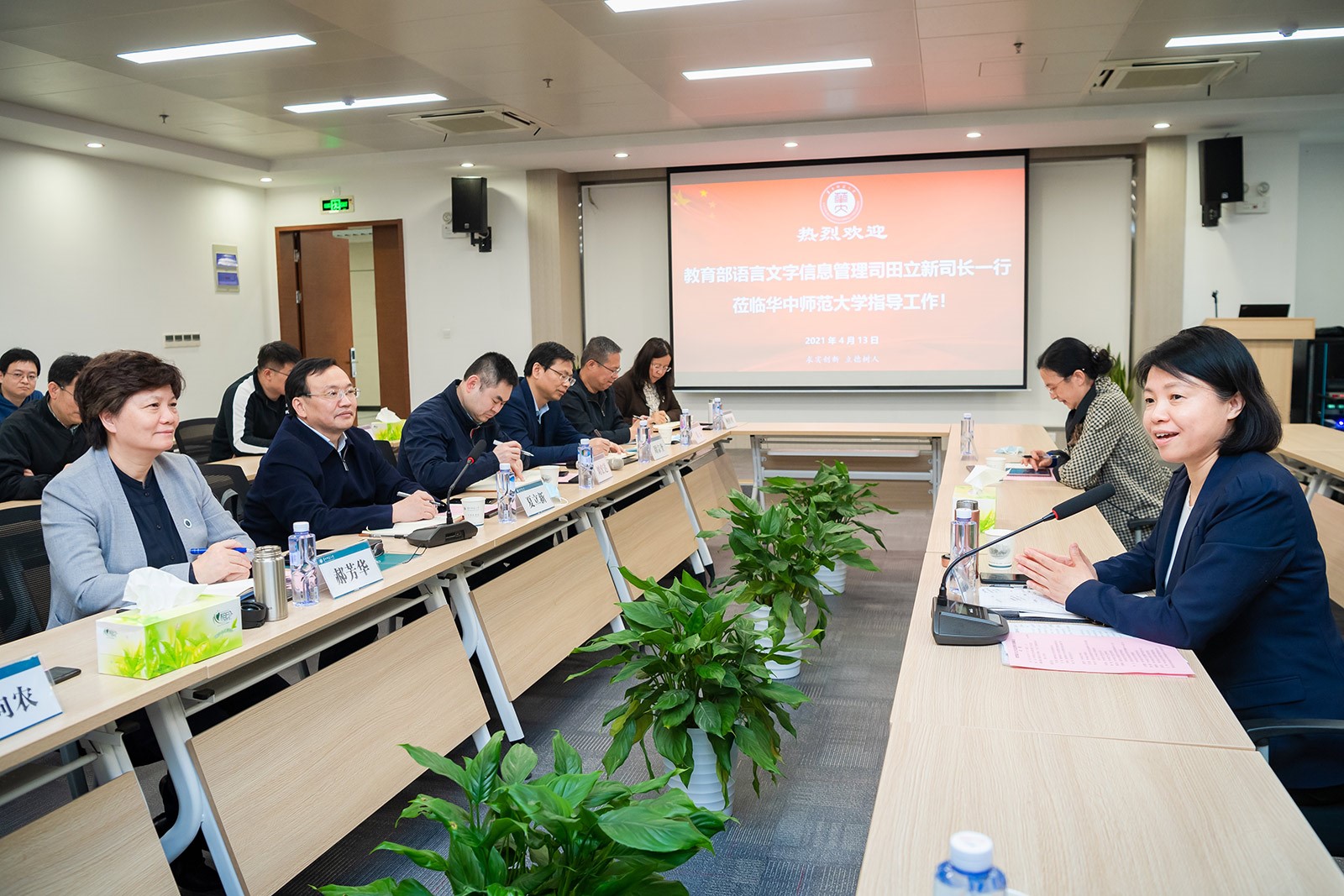华大在线讯(记者 郝日虹)4月13日,教育部语言文字信息管理司司长田立新、湖北省语委办主任戴明一行来校开展专题调研,在南湖综合楼计算机学院7119会议室与校长郝芳华、副校长夏立新、国家语言资源监测与研究网络媒体中心学术委员会主任李向农以及计算机学院党政领导班子座谈。人事部、社科处、研究生院、文学院、语言研究所等相关单位负责人、国家语言资源监测与研究网络媒体中心全体研究人员参加。座谈会由夏立新主持。