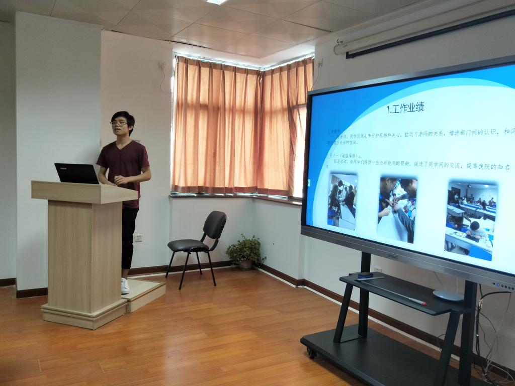 随后评选活动正式开始,评选优秀研究生干部的同学依次按照抽签顺序上台进行汇报。每一位参评同学从个人情况、工作业绩等方面进行汇报,从汇报内容中体现出他们在各自工作中积极主动、认真负责,能独立地、创新地开展工作,圆满地完成各级组织交给的各项任务,也让大家看到研会干部全面发展的风采。