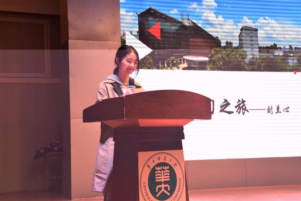接下来,是寒假赴美调研的17级本科生江书怡。她为同学们介绍了2018冬季青年师生赴美社会调研活动的项目详情,包括对美国家庭文化生活的调研;对美国教学教育观念与教学环境的调研;对美国社会职能体系的调研;对美国生态和环境体系的调研;对美国公益组织及志愿者服务的调研;江书怡表示此次活动很有意义,自己的思维得以开阔,感受不同的文化,见到不同的人,行万里路必然是大有裨益的,她也鼓励同学们抓住机会多出去走走看看,充盈自己的内心世界。