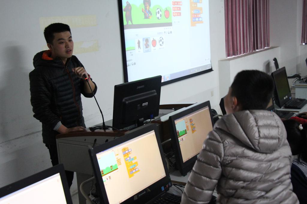 谈及活动的准备工作,他坦言一开始还是遇到了很多困难,比如如何进行活动宣传、保证30余人的课堂教学质量和控场、花大量时间与家长预约协调时间,活动组织志愿者不足等问题。每次活动开始前,他都要提前三个小时和其他协会成员提前来到机房,给60余台机器地安装软件和调试,课后他们会将孩子们的代码发给家长,生成孩子学习报告,并在微信上继续提供支持和协助。最后,他非常感谢教育信息技术学院的邓伟老师、计算机学院的郭京蕾老师对活动的指导,以及计算机学院团委、学生会、机器人协会、创客教育协会、科普协会的志愿者们的配合与协助。此外,他还对大力支持此次活动的计算机学院领导老师以及华师附小的熊老师以及家长们表示感谢。