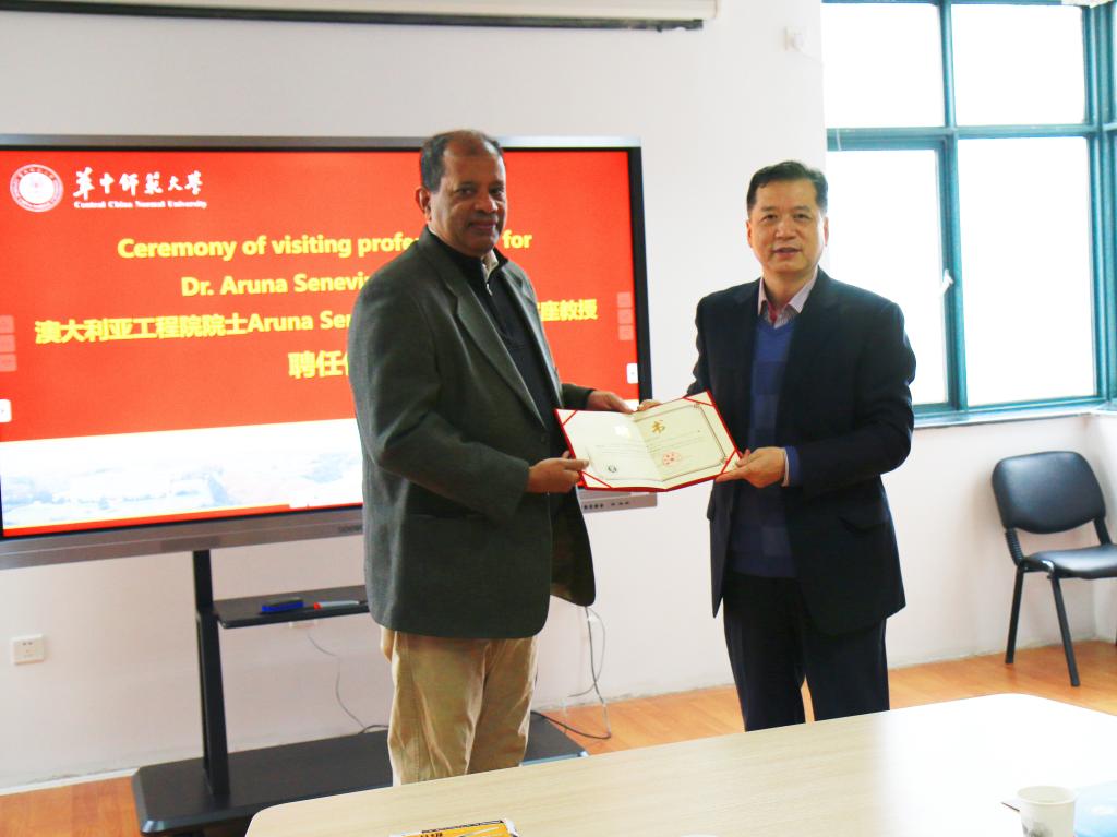 1月16日下午14:30,澳大利亚工程院院士Aruna Seneviratne教授任华中师范大学客座教授聘任仪式在计算机学院1021会议室成功举行。华中师范大学副校长彭南生、国际合作与交流处副处长洪峰、计算机学院教授谭连生、计算机学院副院长张茂元、人事处人才办副主任张文超及计算机学院部分教师出席此次聘任仪式。仪式由计算机学院副院长张茂元主持。