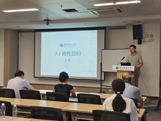 随后,参赛的七名教师依次进行时长20分钟的授课。莫然老师讲解了软件维护相关内容;钟睿老师讲解了计算机视觉、过滤器等内容;姚世雄老师通过问题导入方法,介绍了口令相关知识;孙昊老师循序渐进,结合之前的教学内容,讲解了线性回归知识;董明老师、李沛老师、郝圣老师选择的主题分别是贝叶斯,基准测试程序与库,输入过程的统计特性等内容。