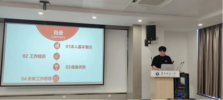随后,第26届研究生会主席团成员谭智泉宣读《华中师范大学计算机学院第27次研究生代表大会选举办法》,进入研究生会候选人竞选演讲环节。本次竞选采取个人限时演讲、评委提问的方式进行。23位候选人依次上台演讲,就自身的基本情况、对工作岗位的认识及未来规划等方面进行了演讲。