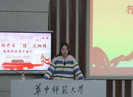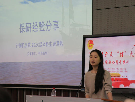 计算机学院记者团讯(通讯员 赖景康 李晨 刘宇骏 周道冉 编辑 辛琎 王敏君)10月21日下午,由计算机学院和信息管理学院共同举办的“‘计’往开来,‘信’火相传”主题联合团干培训第二期优秀学子经验分享会于南湖综合楼N107教室举行。此次培训旨在加强学生骨干对团委学生会工作的认识以及对未来的规划。两院在会上邀请了四位20级本科生作为本期培训主讲人:计算机学院赵潇帆、谢晓培,信息管理学院王乃玉、盛思瑶。两院主要团学成员参与了本次培训。