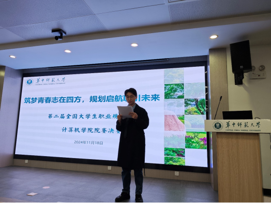 11月18日,第二届全国大学生职业规划大赛计算机学院院赛决赛在南湖综合楼N7119顺利举行。本次决赛由院党委副书记庄甲鹏、辅导员董明月、宗佳敏、肖克、赵丹、孙煜林担任评委。