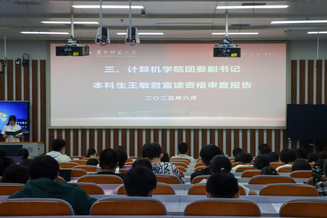 汇报结束后,大会随即转入新一届学生干部选举环节。现场,学生团委副书记王敏君宣读资格审查报告,对本次代表大会的工作和参会代表的相关情况进行介绍。办公室主任胡子恒宣读大会选举办法,详细阐述了候选人产生流程、大会投票规则及监计票机制,并确定六位同学为计算机学院学生团委副书记、第三十一届学生会主席团候选人,二十七位同学为学院团委、第三十一届学生会后备干部候选人。主席团成员路紫晗宣读候选人名单。