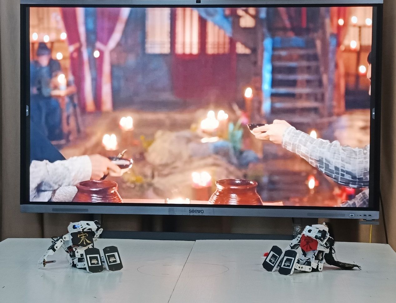 编程环节结束后,活动进入舞台剧展示环节。全体学生分为四组,以《武松醉打蒋门神》《哪吒之魔童降世》《川引禹娇》《精忠报国》为主题,将编程与机器人技术巧妙融入舞台剧创作。各小组精心设计剧情脚本,结合背景视频、现场解说,通过机器人的精准动作演绎,生动再现经典故事场景。舞台剧展示环节为同学们提供了一个展示自我、锻炼能力的平台,也让他们在实践中感受到了科技与传统文化相融合的无限可能。