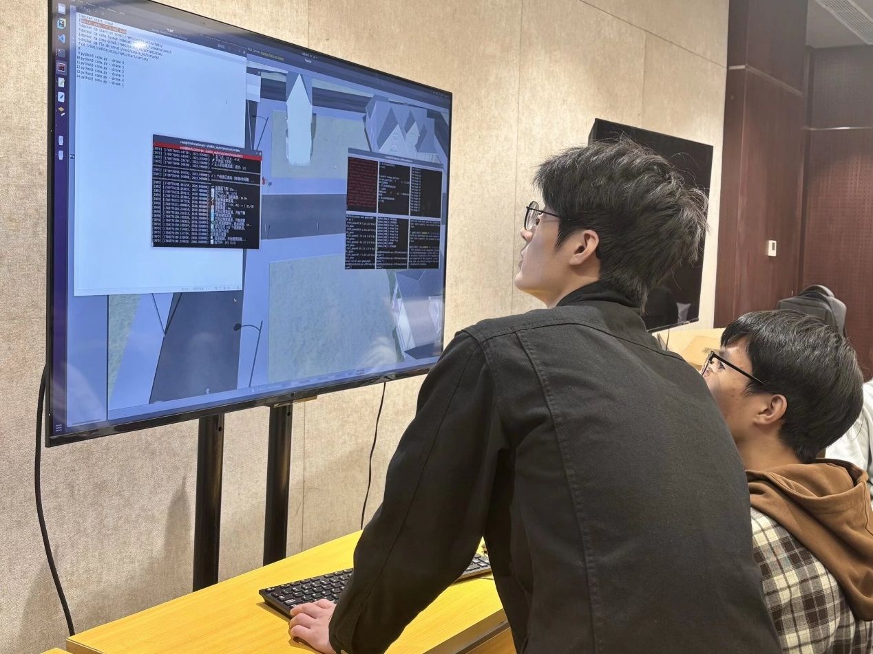 在无人机项目方面,学院派出的“青云揽月”与“云霄折桂”两支团队参与“多旋翼无人机集群协同搜索仿真赛”,最终“云霄折桂”荣获三等奖。该赛项技术集成度高,重点考察多机协同控制、动态路径规划与实时通信等核心能力,要求参赛队伍在仿真环境中通过算法实现对多个移动目标的实时追踪与精确定位。在赵洲、肖克老师的指导下,团队成员围绕分布式决策、一致性协议等关键技术展开集中攻关,依托Gazebo仿真平台反复优化系统性能,最终在比赛中稳定发挥,圆满完成任务。