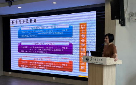 崔院长介绍了计算机学院的硕士研究生招生及培养情况。她首先介绍了华中师范大学校史和计算机学院发展史,接着详细介绍了各个研究生专业的招生考试科目以及招生计划,让营员们对未来的学习方向和内容有了更清晰的认识。仪式尾声,研究生辅导员朱珠老师针对营员提出的问题进行了解答,让营员们进一步了解计算机学院。