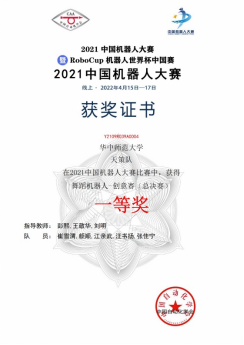 我校代表队的指导老师是彭熙、王敬华和刘明三位老师,队伍成员由华中师范大学机器人协会的21名同学组成。本次全国机器人大赛从备赛到比赛全程获得了学校本科生院、校团委、实验室与设备管理处等职能部门的大力支持。此次参加机器人备赛的同学们纷纷表示,在如此严峻的形式下,团队能取得这样的成绩,离不开学校学院领导老师们的关怀支持和悉心指导。希望未来机器人协会的同学们在学院“以赛促学、以赛促练、以赛促创”的思想下,能够不畏前路重重挑战,勇往直前,不懈拼搏,永争佳绩!