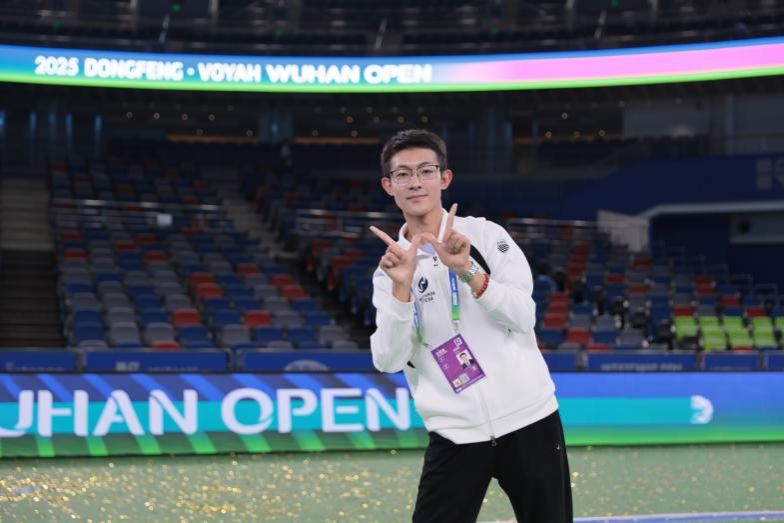 以奉献之心,赴青春之约。赵嘉茂将志愿服务视为连接社会与自我的温暖纽带,用脚步丈量着奉献的意义。他以新媒体编辑助理的身份成功入选武汉网球公开赛志愿者,作为媒体服务中心的一员,站在信息的前沿阵地,接触最新的赛事资讯和媒体动态,为武网贡献自己的青春力量。尤为珍贵的是,他在服务中与志同道合的伙伴们从相遇、相识到并肩,在协作中互助,在忙碌中鼓励,那份在团队中淬炼的深厚情谊,为他的武网记忆增添了最为温暖的底色。