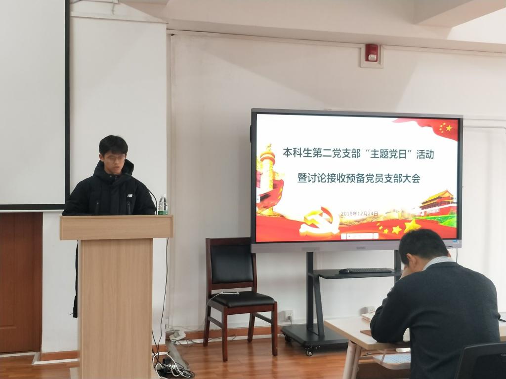 大会开始,发展对象们逐一向党组织汇报自身对党的认识、入党动机、个人经历以及在校表现等;随后各位入党介绍人向大会介绍其主要政治思想、学习、工作生活等情况并就发展对象能否入党表达意见;支部在场同志对发展对象提出考察问题,并就其是否符合党员条件发表了意见。