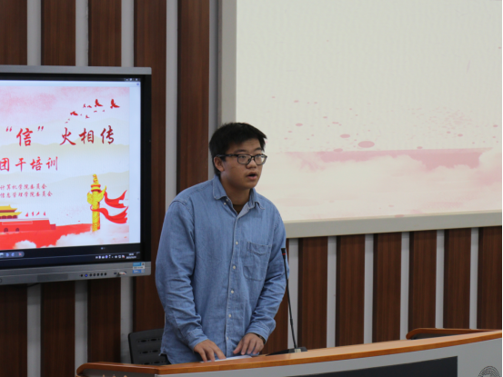 学生代表、计算机学院2023级本科生刘彦希发言。他阐述了本次团干培训的重要性、必要性,并点明了身为团干所肩负的重要责任。他表示:“青年一代要肩负起历史使命,不断学习,提高综合素质,培养创新精神和实践能力,为国家的现代化建设提供智力支持和人才保障。这才是我们当代青年的终身目标。”