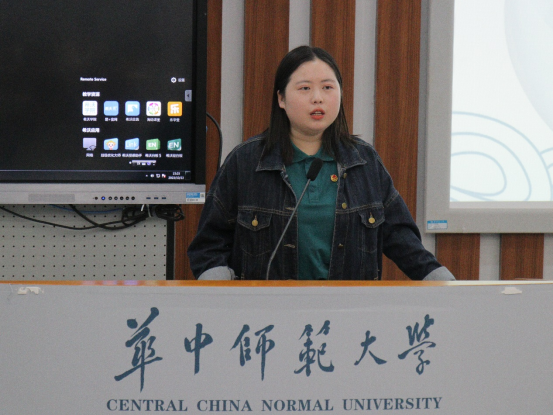 杨琪对“网站新闻基本结构”进行了讲解。她从标题、电头与导语、正文主体、结尾四个部分进行介绍。针对标题,杨琪引用新闻界中“三分之一时间写标题、三分之一时间写导语、三分之一时间写主体”这一说法印证了标题的重要性。杨琪指出撰写会议新闻导语要注意挖掘新闻点,从会议中找出新闻与价值。
