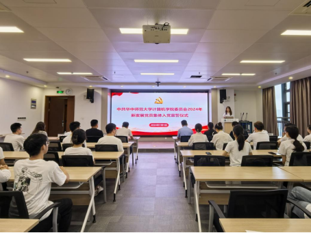 为庆祝中国共产党成立103周年,进一步加强党员党性教育,切实增强新发展党员的身份认同感和责任感,7月1日中午,计算机学院党委于南湖综合楼7119报告厅举行2024年新发展党员集体入党宣誓仪式。院党委书记王坤、副书记庄甲鹏,研究生辅导员朱珠、孙煜林,本科生辅导员宗佳敏、肖克、赵丹,研究生专硕第一党支部书记陈欣紫出席本次仪式。仪式由计算机学院党务干事、本科生辅导员董明月主持。
