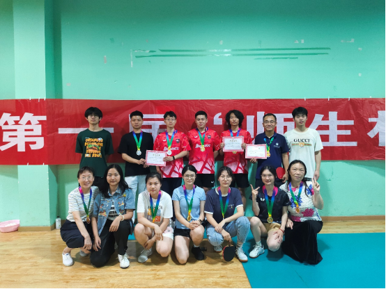 在混合双打环节中,双方队伍都展现出惊人的默契,轮换接发、攻防转换间尽显战术变化。混合双打中的大板扣杀、频繁变线、声东击西更将比赛热度推向了高潮。一次次精彩博弈引得观众惊呼声连连。最终,研究生队凭借出色的团队协作和策略调整,以2:1的比分战胜教职工队。在本科生与教职工的对决中,双方队员施展浑身解数,从削球到长球,从攻球到旋球。场上球路变化莫测。两场单打过后,本科生队以2:0的比分战胜教职工队,夺得本届比赛的冠军。