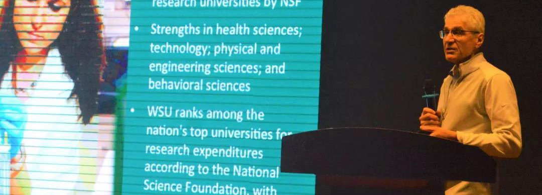 美国韦恩州立大学创立于1868年,坐落于美国密歇根州底特律市,是美国著名的公立研究型大学。Mr.Fotouhi介绍到,韦恩州立大学在13所学院中有超过380项学术研究项目,在世界范围内拥有超过100个研究机构。在这所拥有多元文化之美的大学中,校内有超过400个学生组织,歌剧院、篮球馆、棒球馆,所有设施应有尽有,来自48个不同国家的学生们生活在这样一所大学中互相学习交流,学习氛围十分浓厚。