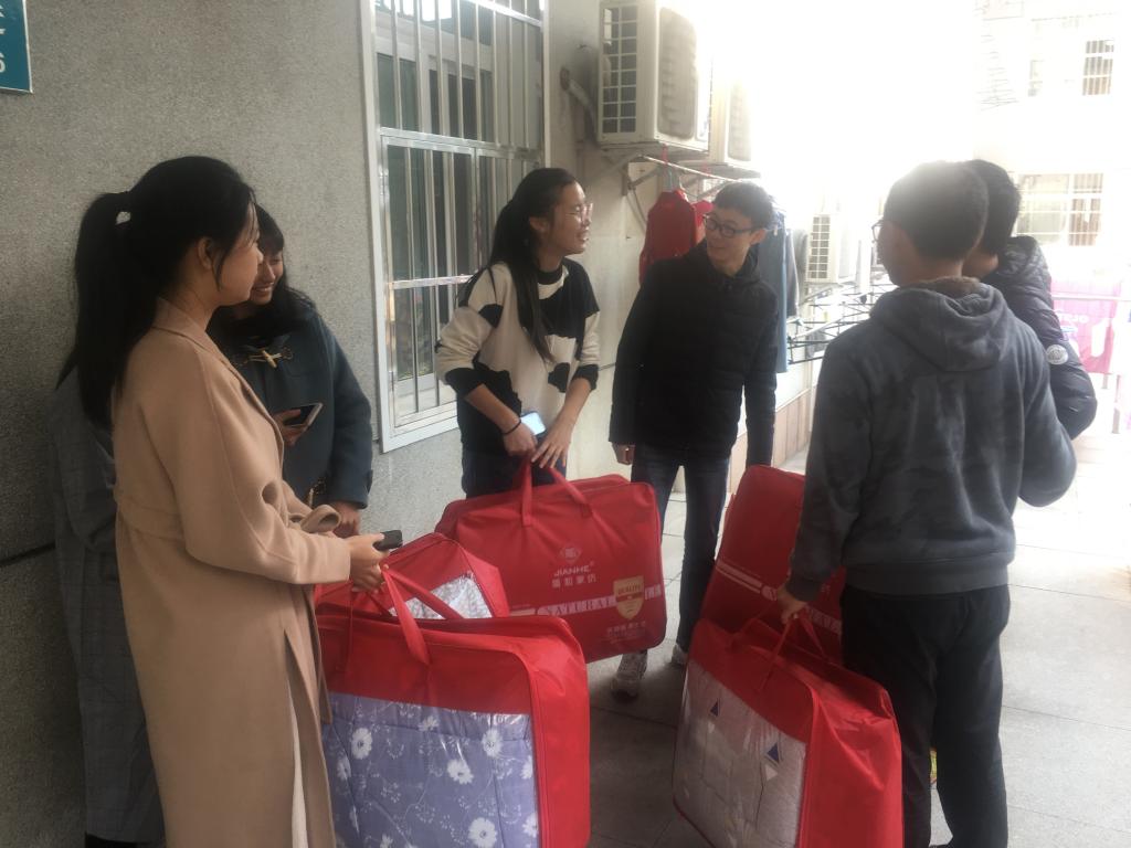 计算机学院记者团讯(通讯员 汤梦圆 编辑 范梦宇)天气转凉,一年一度的寒冷如期而至,同学们都纷纷穿上了厚重的衣服。计算机学院领导和老师高度关注困难学生缺衣少被的问题,根据学生资助中心的倡议,11月27日,华中师范大学计算机学院举行了冬日送暖活动。本次活动由18级辅导员范梦宇老师组织,18级年级学生会生活部和志愿服务部协助,旨在给被子单薄的学生送去棉被,让他们即使在武汉寒冷的冬天里也能感受到被关怀的温暖。