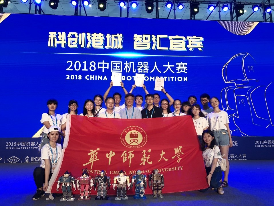 计算机学院记者团讯(通讯员 朱香宁 张宇轩)2018年8月13-16日,第20届中国机器人大赛在四川宜宾成功举办。华中师范大学计算机学院选派三组代表队参加舞蹈机器人双足人形项目,经过一天的激烈角逐,三组代表队全部获得一等奖,包括亚军和季军。