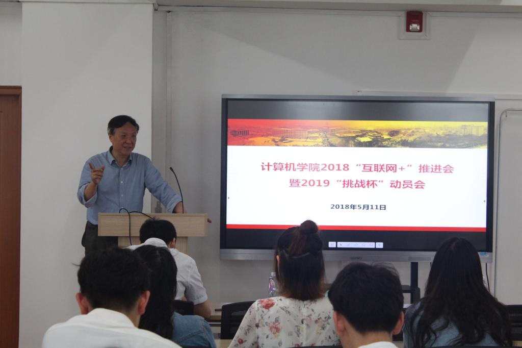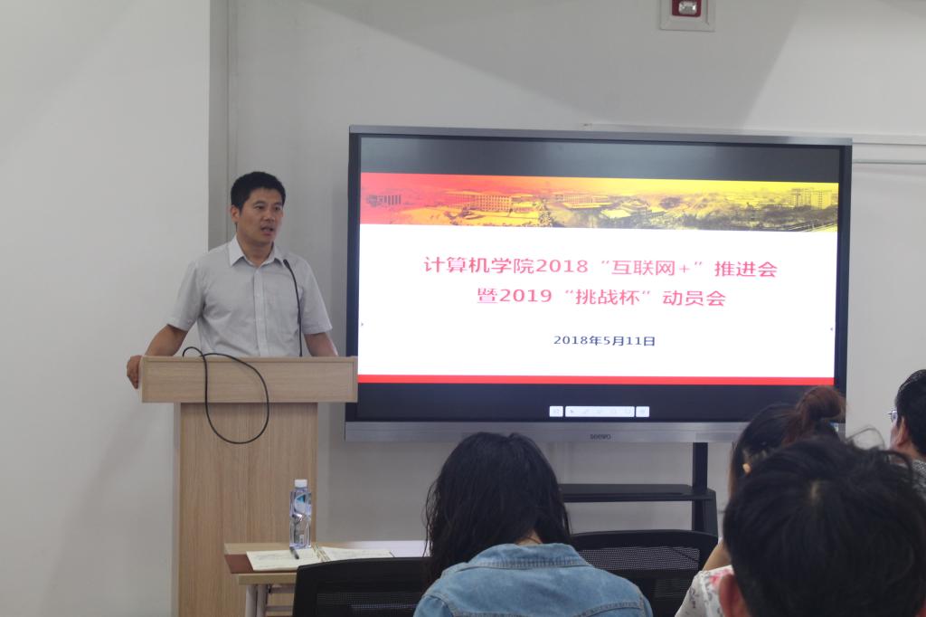 计算机学院记者团讯(通讯员 黄嘉楠 陈泽军 编辑 要娅楠)5月11日,计算机学院2018“互联网+”推进会暨2019“挑战杯”动员会在九号楼1005报告厅举行。计算机学院分党委副书记王坤、副院长王敬华出席此次会议,王敬华副院长、郑世珏教授、教务处程凯老师和校团委陶力老师作指导报告。计算机学院教师及学生参与本次会议。
