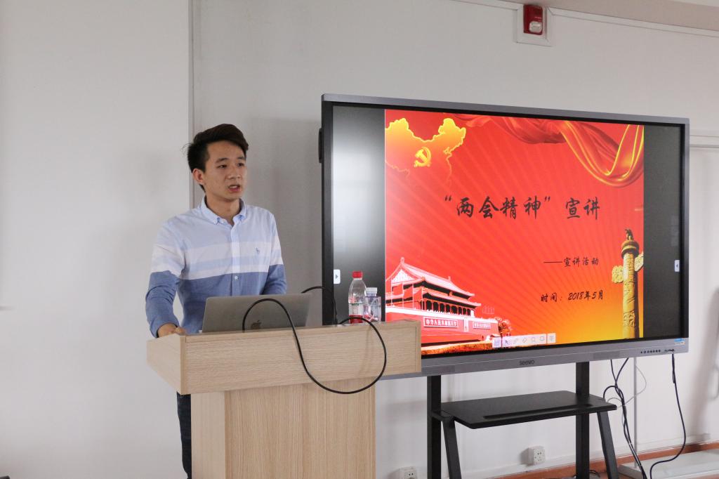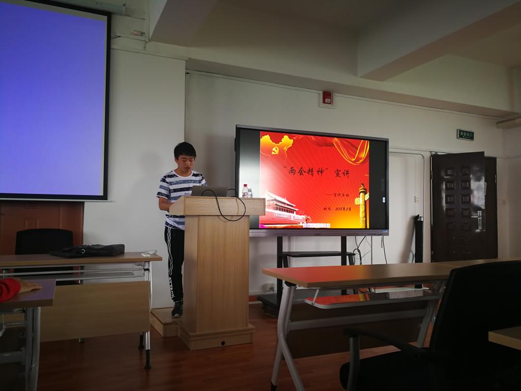 5月10日15:30,计算机学院研究生党支部在九号楼1005报告厅开展“两会精神宣讲活动”,全体17级研究生参加宣讲活动。会议由学硕党支部书记聂银鑫主持。
