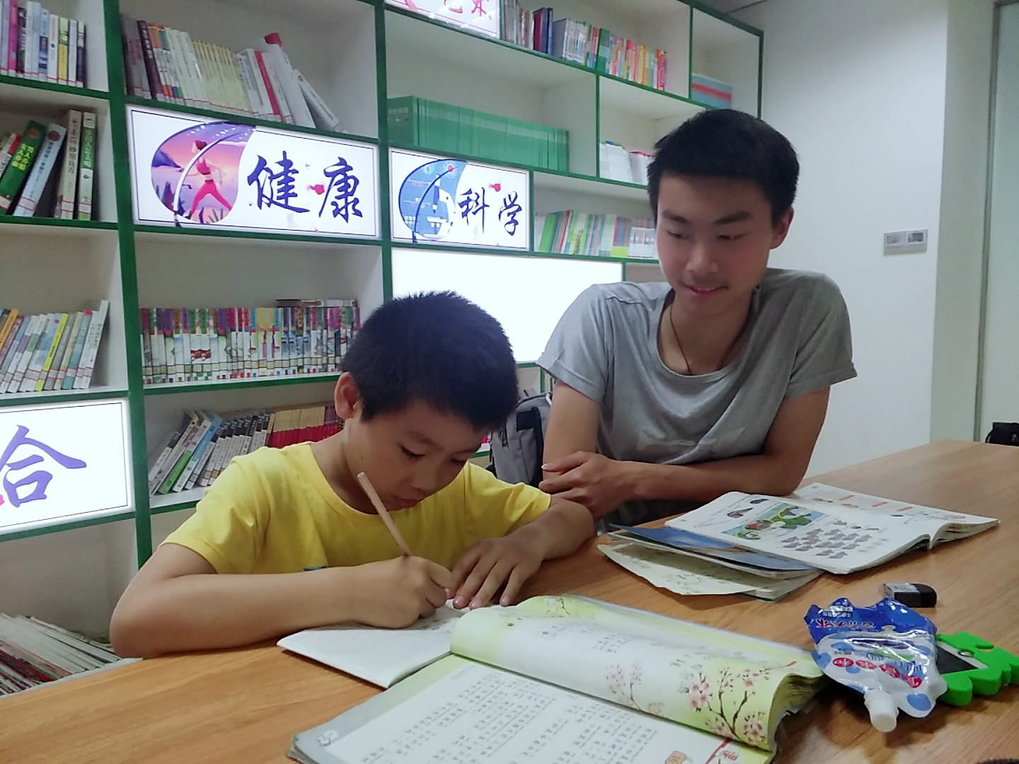 活动当天,我院三位志愿者在学校东门集合并前往方桂圆社区进行志愿活动。四点半左右,志愿者们等待着小朋友们的到来,第一次加入此次活动的志愿者胡立鹏则满怀期待的说:“期待了很久,终于能够参加这项活动了,我很希望能够帮助到小朋友们。”随后,小朋友们陆续到来,写作业的过程中有任何疑难问题,志愿者们都会耐心地为其解答。