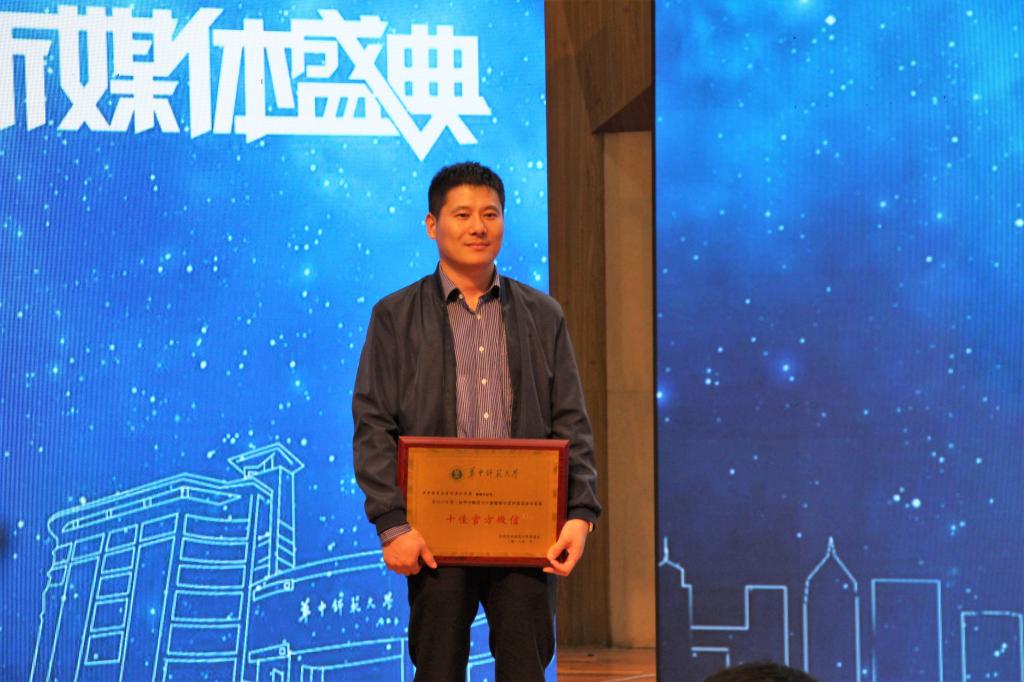 之后的颁奖环节中,华中师范大学党委副书记、纪委书记陈厚丰为计算机学院颁发“十佳官方微信”奖项。我院蔡庆昱老师获荣获“优秀宣传干事”奖项。