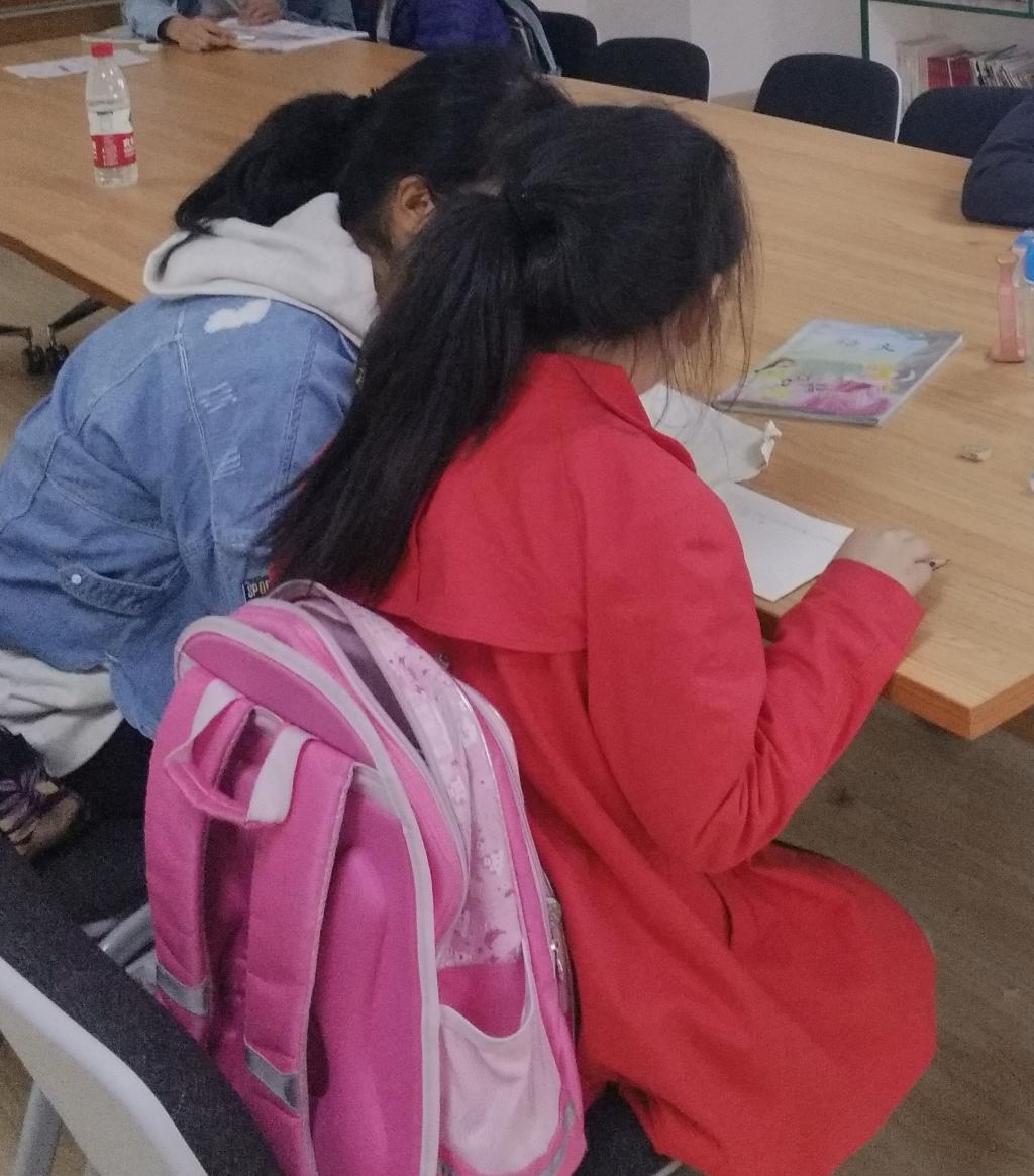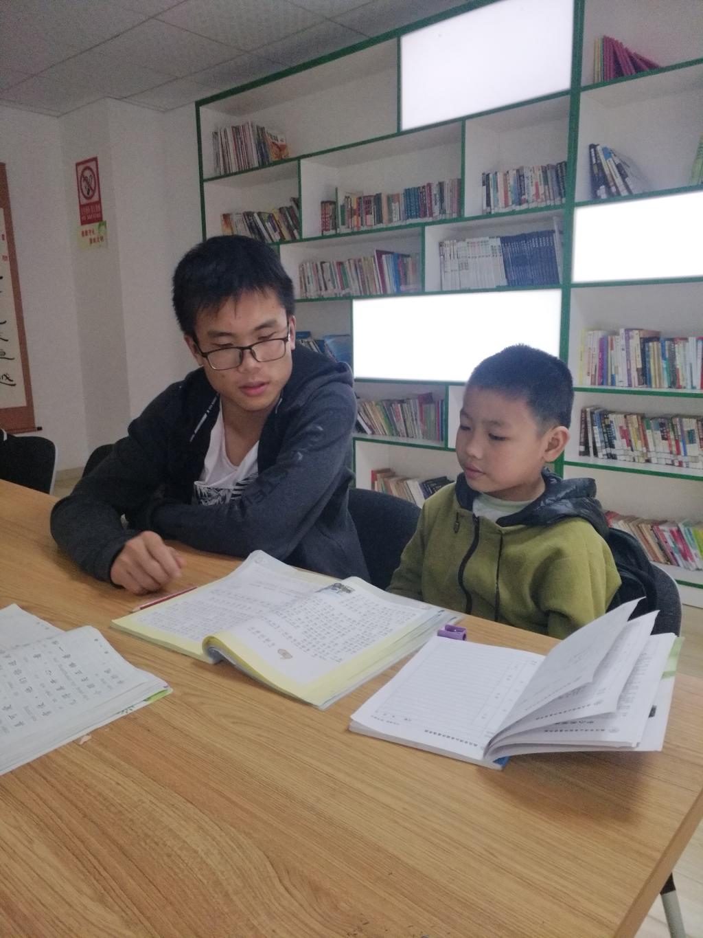 当然,志愿活动过程中也会有很多突发状况。这次活动中有一名男孩跟对面女孩同在一个班,所以在做作业的时候,两个人不停地讲话、嬉闹,但是志愿者严肃地跟他们说明了写作业不能开小差,写完了作业才能说闲话、玩闹。他们很听话,就没有继续嬉闹了,志愿者们不由感到几分欣慰。不久,这名男孩的姐姐也过来了,姐姐高了两个年级,比起弟弟,姐姐更加听话,一直在做着自己的作业,不懂的就问一问志愿者老师怎么做,志愿者胡库伦也耐心地为之解答,并告诉她解题的方式,而不是一味地给予答案。