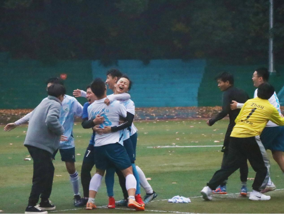 不仅仅是运动员们,观众们的热情也宛如万丈篝火冲破云端。在点球对抗中,守门员与球员的心理博弈拨动着在场所有人的心弦。双方势均力敌,将比赛的悬念一直保留到第五轮的点球当中。计算机学院的球员们顶住压力,最终以4:3的比分赢得点球大战的胜利,摘得本届计科杯冠军的桂冠。随着比赛的结束,计算机学院的球员们与看台上的观众们一同欢呼。热烈的呐喊声响彻云霄,计算机学院的球员们紧紧拥抱在一起,共同庆祝这来之不易的胜利。