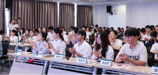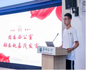 大会第二项,新进学生干部代表发言。学院团委办公室部委赵嘉茂首先分享了自己面试过程中的经历与感受,表示自己将珍惜团学大家庭中的每分每秒,并激励全体部委脚踏实地、共同奋斗,积极投身于团委、学生会的各项工作中。随后,学院学术与科技创新中心部委金丽宏表示,团学的工作离不开全体成员的支持与参与,并号召全体部委携手并进,以饱满的热情和坚定的信念,迎接即将到来的挑战,努力让我们的青春在团学的舞台上绚丽绽放。