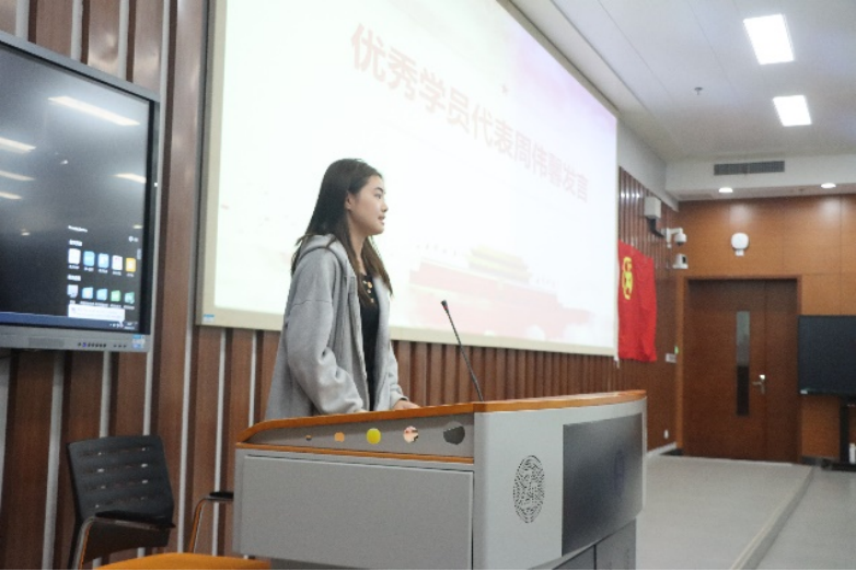 优秀学员代表周伟馨分享了自己在这次培训中的收获和感悟。她表示,作为团学骨干,不仅要具有强烈的责任感,更要积极担当作为,坚定信念勇往直前,以赢得同学们的信赖,并在此过程中发挥积极作用。最后,她鼓励同学们以更加饱满的热情和坚定的信念迎接未来的机遇和挑战,努力成为能堪大任的时代新人。