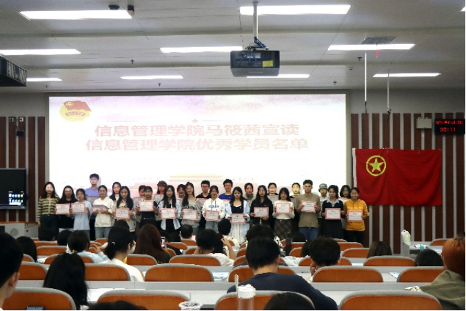 随后,信息管理学院马筱茜、计算机学院王安麒分别宣读了两院优秀学员、优秀小组名单,由王乐、肖克为优秀学员颁发证书,庄甲鹏为优秀小组颁发证书。
