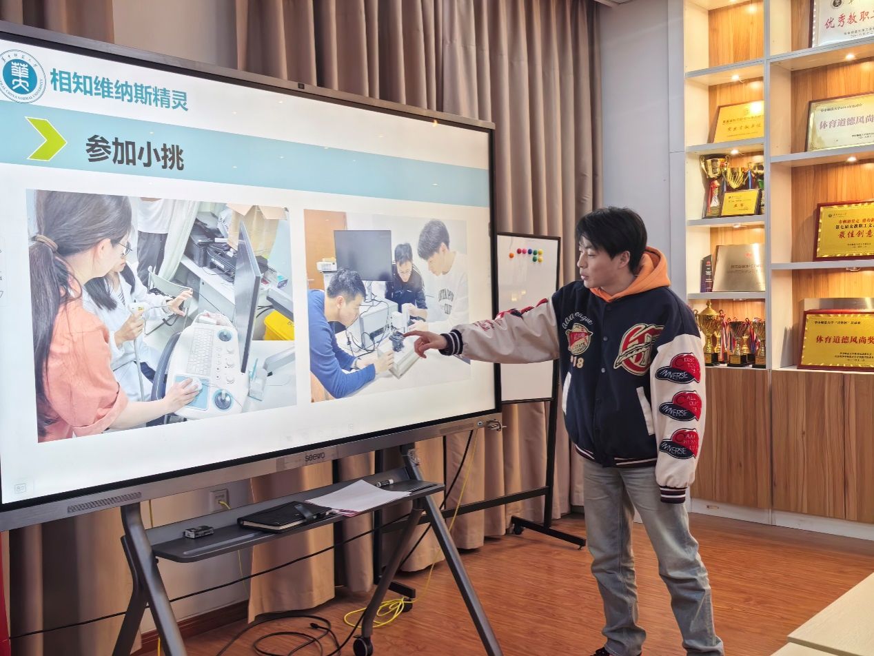 12月19日晚,首次团课分享活动在南湖综合楼N7052会议室举行。陈靖元以《我和维纳斯精灵》为题,分享了自己从初入团队时的迷茫与挑战,到最终荣获全国特等奖的宝贵历程。在分享过程中,他重点阐述了团队协作对个人沟通、组织管理等能力的深刻提升作用。陈靖元还强调,“参赛即学习,团队不断迭代作品是提升实践能力的重要途径”,并鼓励同学们在今后的学习和实践中,勇于尝试、敢于挑战,通过团队合作不断完善自我。