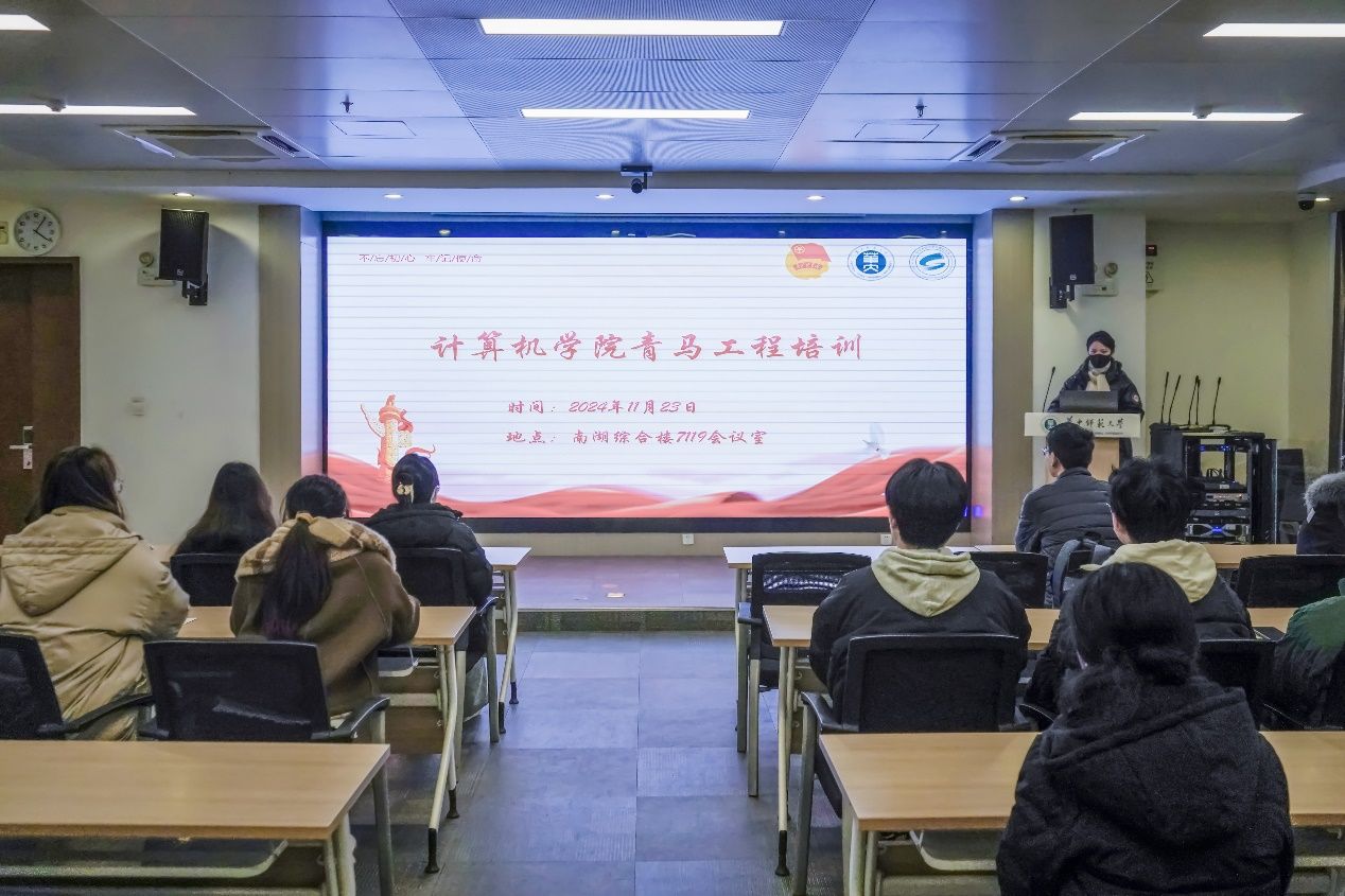 计算机学院记者团讯(通讯员 黄丝语 胡一凡 编辑 梁智浩)为深入贯彻习近平新时代中国特色社会主义思想和党的二十大精神,切实加强学院 “青马工程” 建设工作,11月23日,计算机学院于南湖综合楼N7119会议室开展“青马工程”培训活动。此次培训邀请恽代英菁英学校学员李逸飞、计算机学院团委组织部部长唐诗吟进行主讲。