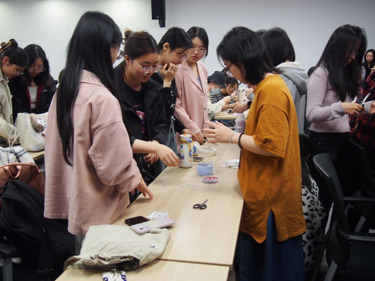 4月13日晚上,由计算机学院、信息管理学院、人工智能教育学部研究生会生活服务活动中心联合主办,公共管理学院研究生会生活服务活动中心承办的“珠语指尖,链结韶华”DIY手链活动在南湖综合楼N7119教室顺利开展。各学院近160名研究生参与本次活动。