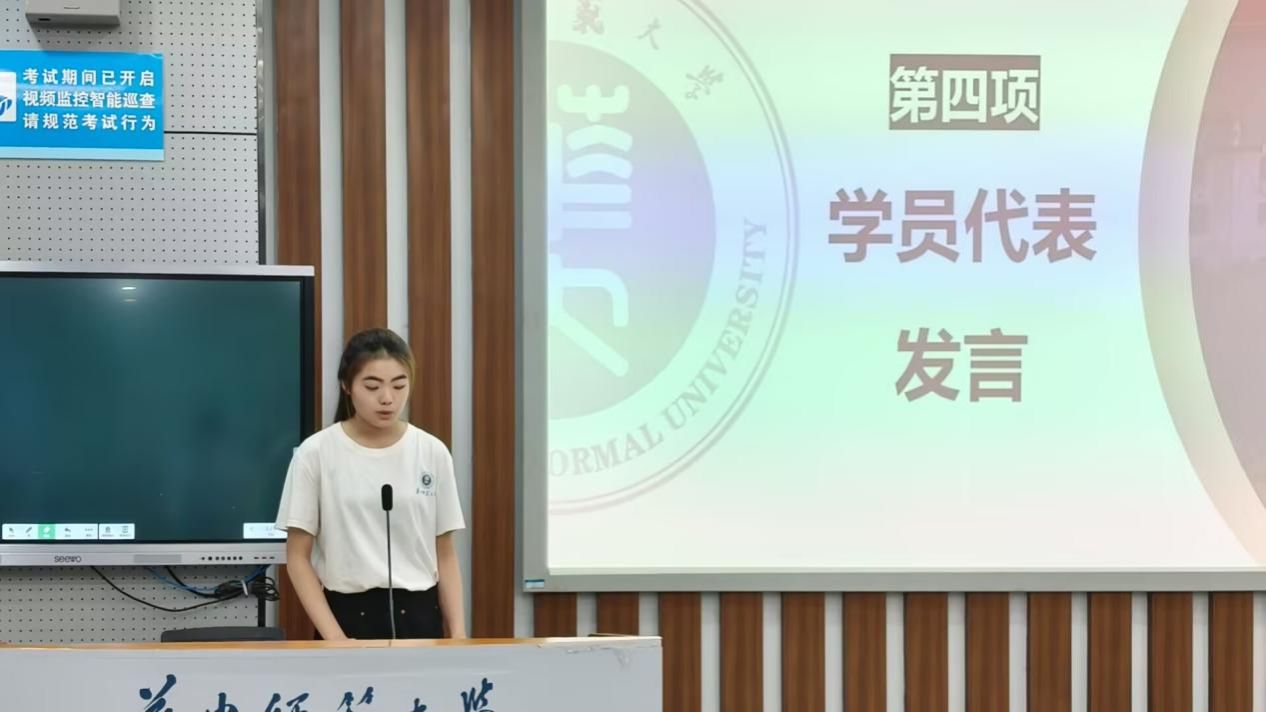 随后,计算机学院2024级本科生周伟馨作为学员代表发言。周伟馨指出,作为学员,要以高度责任感和使命感投入学习,研读党的理论著作,深入学习习近平新时代中国特色社会主义思想。同时,要将理论与实践结合,在实践中深化对党的认识,树立坚定信仰。她呼吁全体学员将所学化为行动,树立远大理想,增强责任感,弘扬核心价值观,以培训班为新起点,争取早日入党。