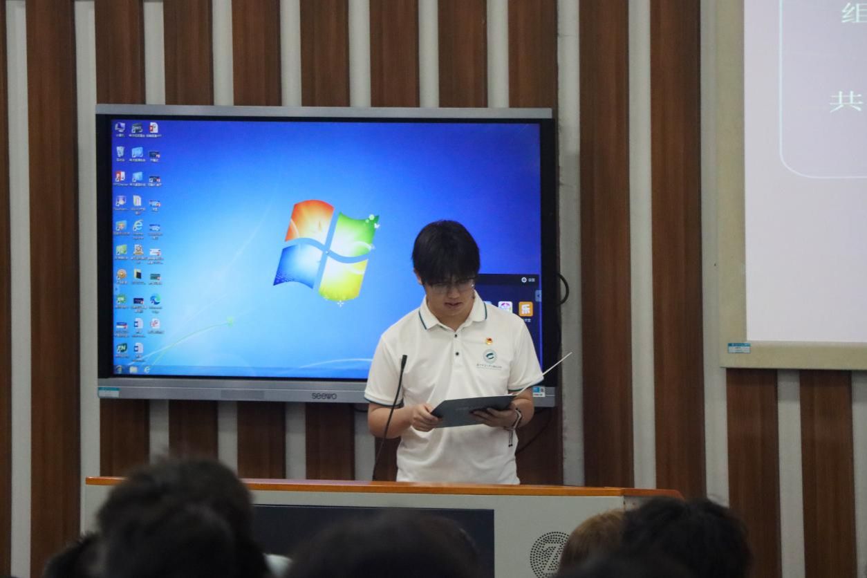 大会在庄严的国歌声中拉开帷幕。学生团委副书记王安麒代表学院团委、第三十届学生会作工作报告。报告从“升级核心驱动”“升级系统架构”“优化内存管理”三个维度,全面展示了过去一年团学工作的成果,涵盖强化思想教育、推动志愿服务常态化、提升科创育人成效等方面,并对未来工作提出了“深化共青团改革实践”的展望。