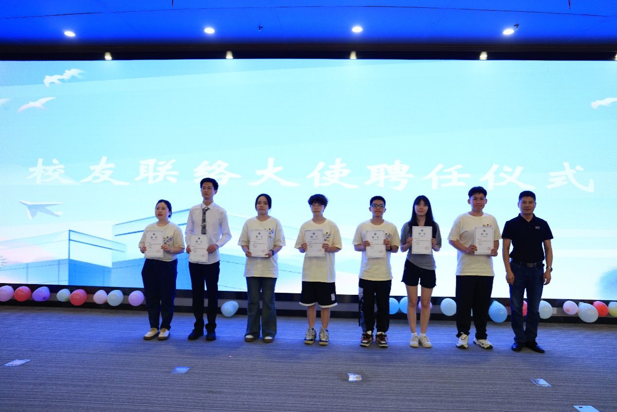 联欢会尾声,“校友大使聘任仪式”庄重举行。王坤书记为杨琪等毕业生颁发“华中师范大学校友联络大使”聘书。