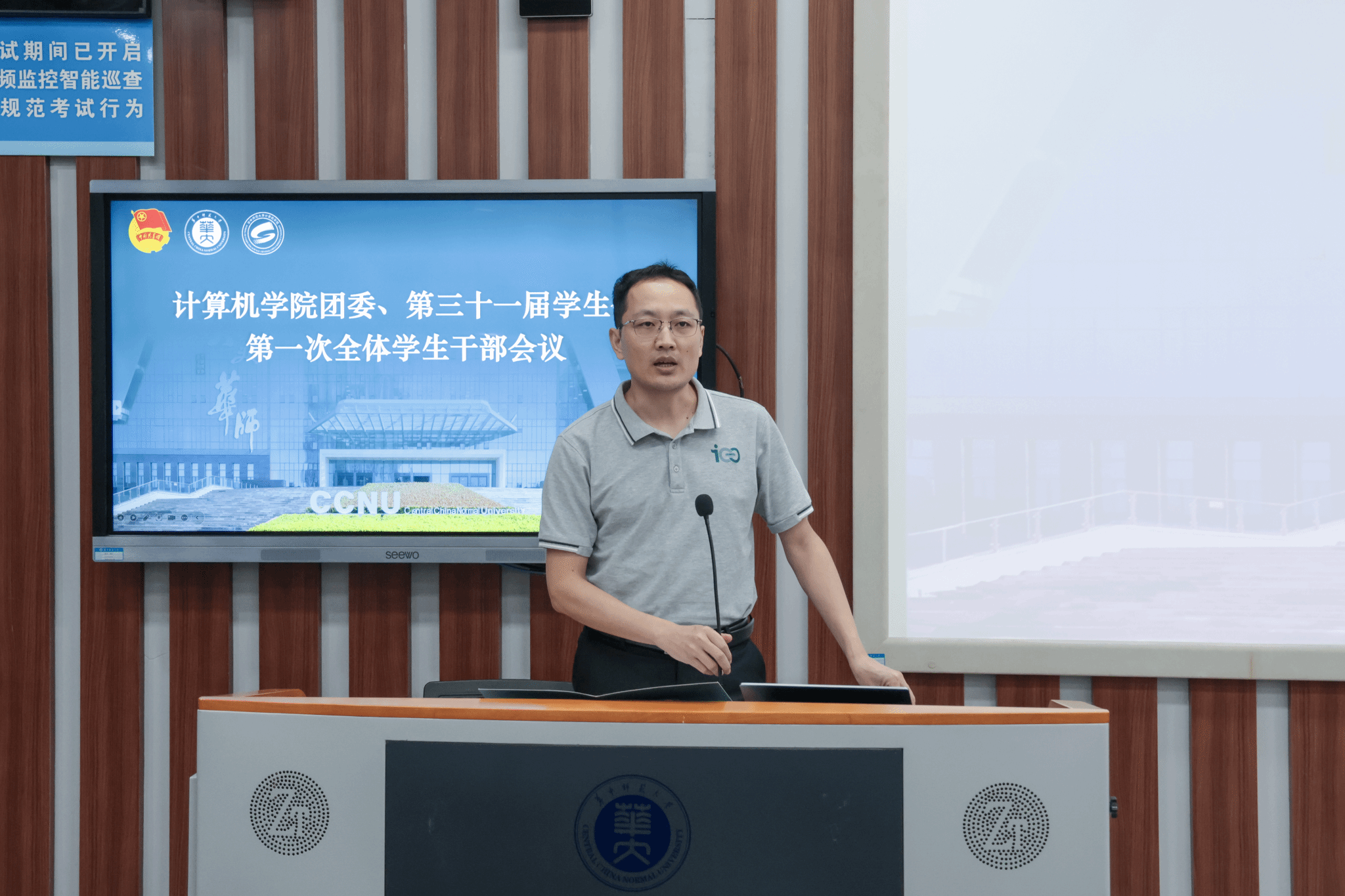 计算机学院记者团讯(通讯员 陈子妍 蒋璋源 孙嘉晗 编辑 陈宇欣 陈雯潓 李逸飞)10月10日中午,计算机学院团委、第三十一届学生会第一次全体会议于南湖综合楼N319教室召开。计算机学院党委副书记庄甲鹏、团委书记肖克、团委副书记赵丹及第二十六届研究生支教团成员谢晓培出席,计算机学院团委、第三十一届学生会全体成员参加本次会议。会议由计算机学院学生会主席团成员段一可主持。