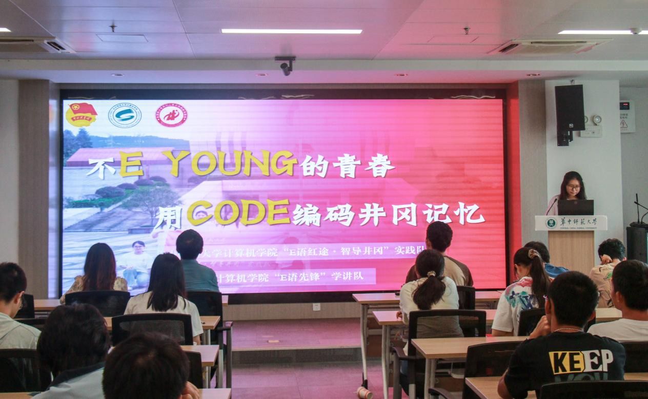 宣讲活动中,学讲队成员紧扣今年暑期在井冈山的红色研学经历,围绕井冈山精神的时代内涵,以“理论阐释+青年视角”的讲述方式面向学院本科生各年级、班级及党团支部开展宣讲,生动呈现革命精神与当代青年的精神共鸣。宣讲以“不E YOUNG的青春 用CODE编码井冈记忆”为主题,通过实践纪实视频、党员宣讲等形式,展现党员骨干在理论与实践中的成长感悟:从专题学习筑牢信仰根基,到沉浸式教学深化情感认同,再到数字技术赋能红色文化传播的创新实践,充分体现党员学讲队在“学思践悟行”中的示范引领作用。