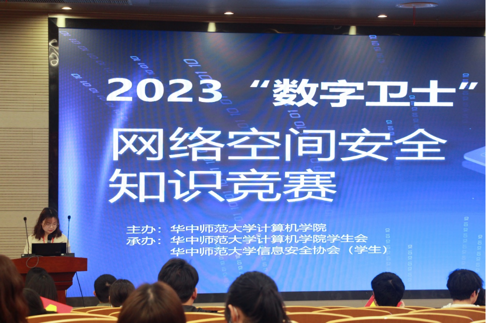 计算机学院记者团讯(通讯员 景浩洋 柳名轩 编辑 杜宇天 杨琪)为普及《中华人民共和国网络安全法》相关规定,全面提升大学生信息安全意识,加强个人隐私保护能力,提高信息安全基本防护水平,4月5日晚上,华中师范大学“数字卫士”网络空间安全知识竞赛在南湖校区综合楼一楼报告厅如期举行。本次知识竞赛活动由计算机学院主办。经筛选,来自各学部学院(所、中心)的总计30支队伍参加了此次知识竞赛。计算机学院学术与科技创新中心部委路紫晗担任本次比赛主持人。