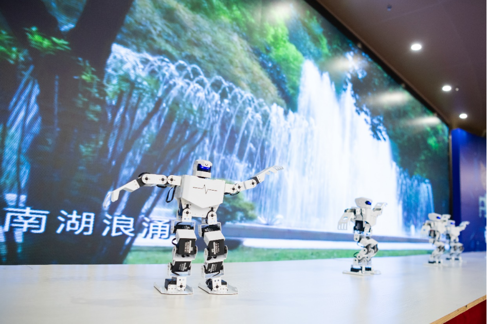 闭幕式伊始,华中师范大学机器人协会为现场观众带来校歌舞台剧表演。该舞台剧以华师校歌为背景音乐,由10台机器人跟随着音乐律动挥舞相应的动作。舞台剧不仅让观众领略到机器人的舞蹈风采,展现出校歌的魅力,而且也在歌舞中传达了对参赛选手的美好祝愿。