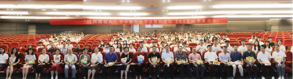 计算机学院副院长谢伟、崔建群分别宣读了《关于准予计算机学院2023届计算机学院(本科)毕业证和授予学士学位》的决定以及《关于准予计算机学院2023届计算机学院(研究生)毕业和授予硕士学位》的决定。为选树毕业生先进典型,培养优秀人才,院党委副书记庄甲鹏宣读《关于授予张小丫等60名同学华中师范大学2023届优秀毕业生称号》决定。蒋兴鹏、何婷婷为毕业生代表颁发毕业证书和学位证书,莫然、常亚楠为优秀毕业生颁发证书并赠与毕业礼包。